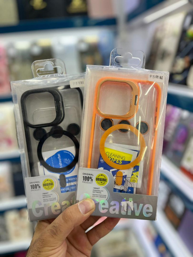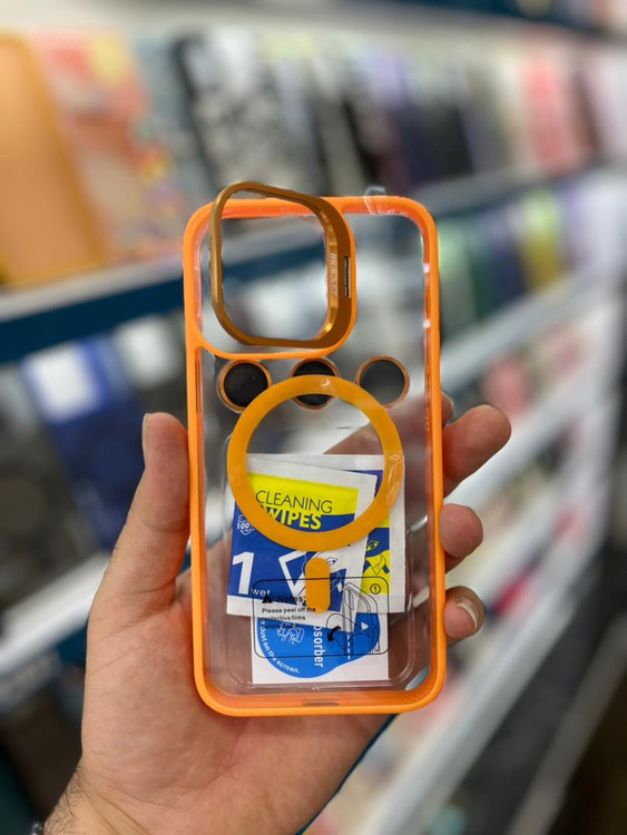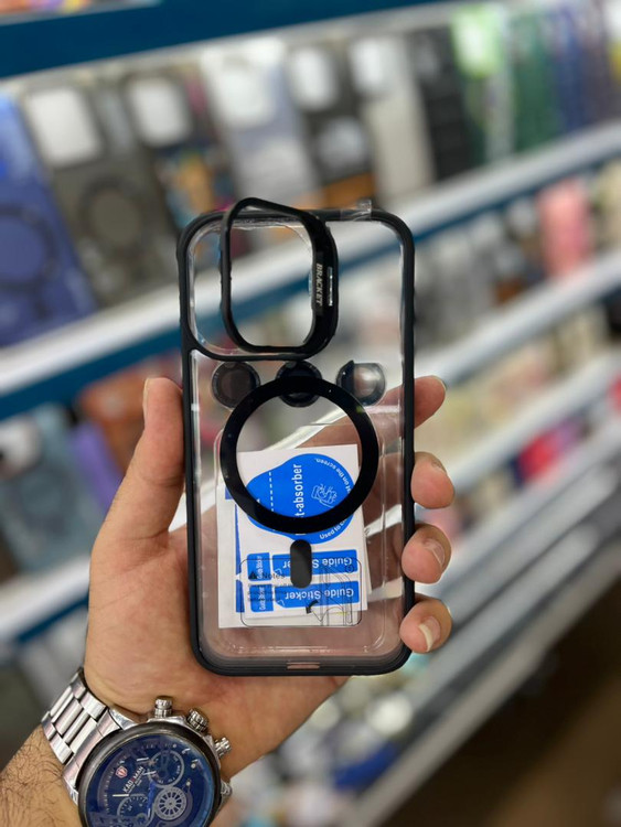 قاب مگ سیف اصلی شیشه ای با محافظ لنز رینگی آیفون iphone 15 pro max