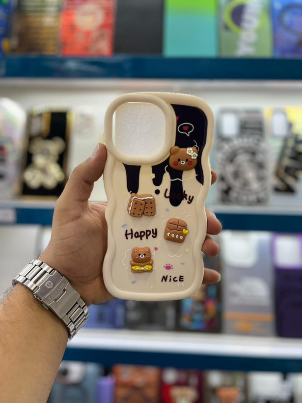 قاب سیلیکون عروسک برجسته خرسی iphone 16 pro max